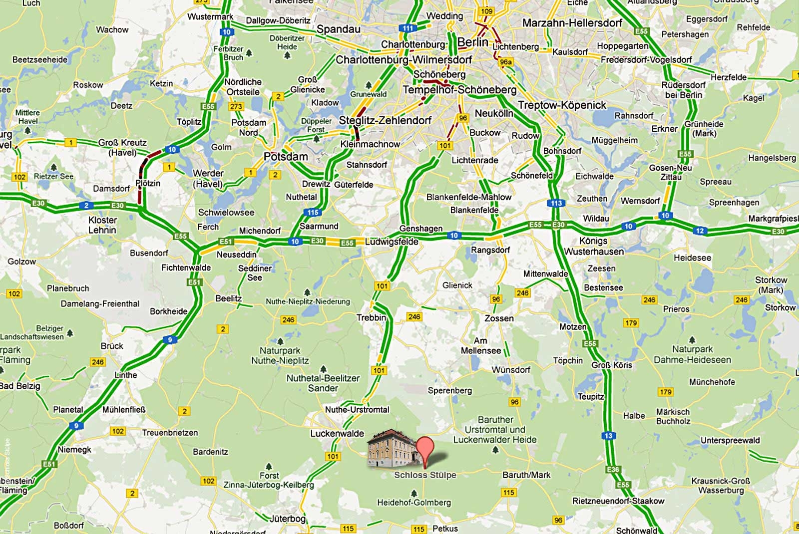 ist Schloss Stülpe gut zu erreichen: