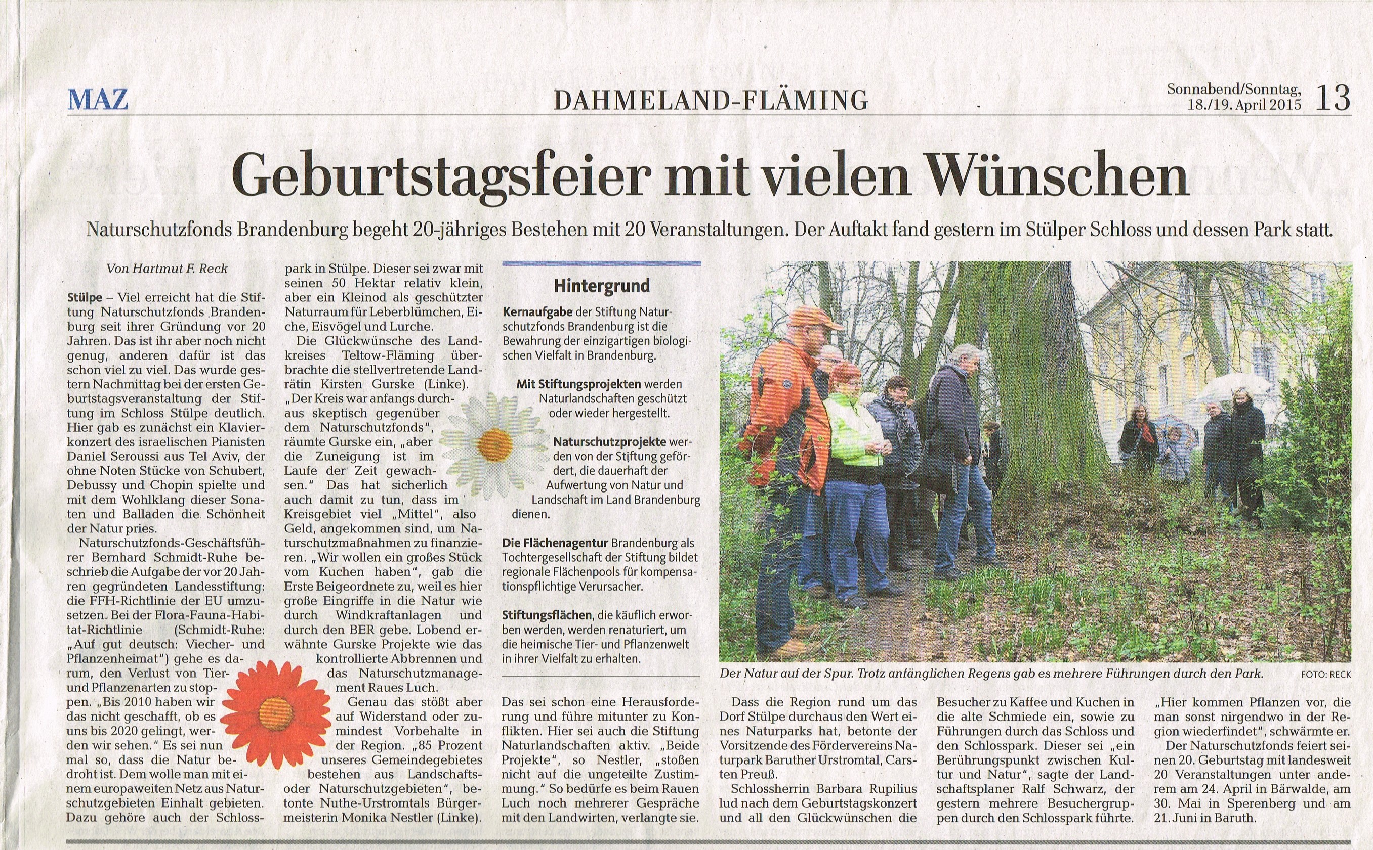 Naturschutzfonds Brandenburg begeht 20-jähriges Bestehen mit 20 Veranstaltungen.